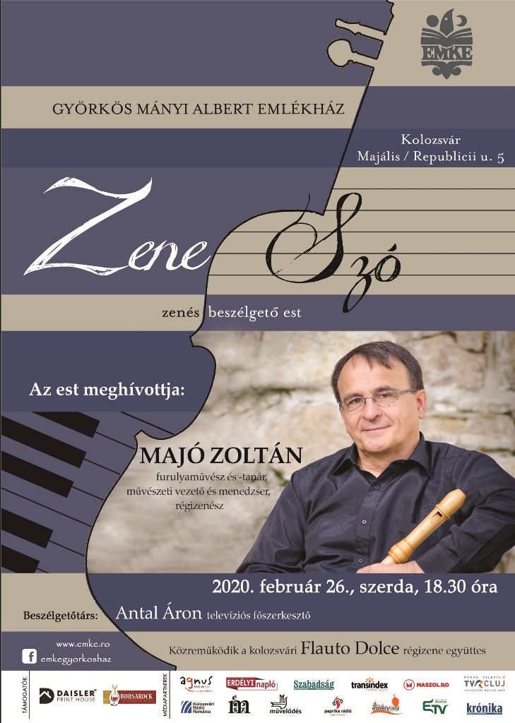A ZeneSzó című beszélgető-sorozat idei első estjére kerül sor 2020. február 26-án, szerdán 18.30 órától a Györkös Mányi Albert Emlékházban (Kolozsvár, Republicii/Majális u. 5.), amelynek meghívottja Majó Zoltán furulyaművész-tanár, régizenész.